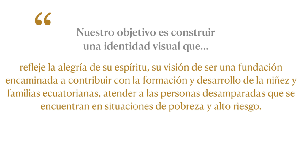 El logo signifíca estos valores de la marca. Este símbolo nació de una etapa de transformación, un nuevo tiempo que tenia que reflejarse la esencia de la fundación con una historia de hace más de 15 años de perseverancia en llegar a los lugares donde más necesitaban esperanza y alegría.